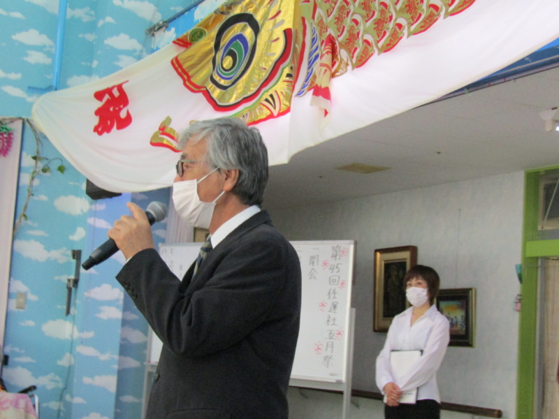 5月10日は文字通りの五月晴れに恵まれた心地よい日となりました。任運社の創立記念としての第45回五月祭を開催しました。今年は例年と違って、新型コロナの感染予防のため、利用者の家族、任運社の理事・評議員等関係者及び来賓や外部の招待者がいない行事となりました。皆さんが楽しみにしていた飲食の模擬店も中止としました。